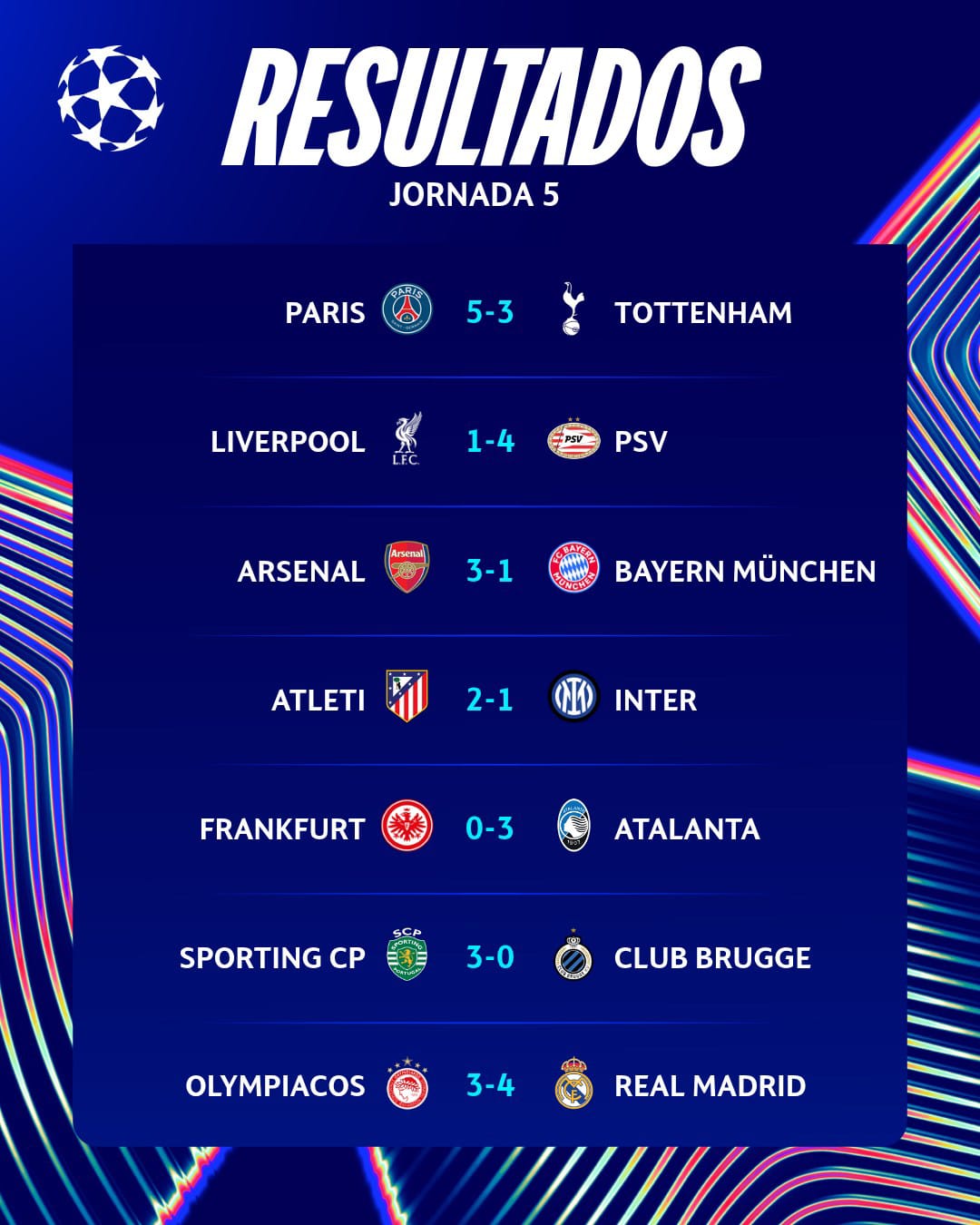 La quinta jornada de la Fase Liga de la Champions League concluyó con grandes partidos y varias goleadas en una nueva semana del torneo más importante de Europa. Para los ecuatorianos Piero Hincapié (Arsenal), Willian Pacho (París Saint-Germain) y Joel Ordóñez (Club Brujas) fue una fecha con distintos matices en su camino por el máximo certamen continental.