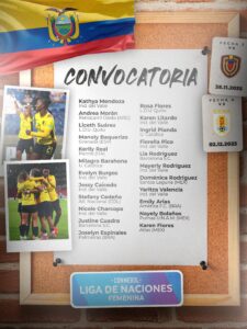 La Selección Ecuatoriana Femenina presentó la nómina de jugadoras convocadas para afrontar una nueva ventana de la CONMEBOL Liga de Naciones, donde deberá medirse ante Venezuela el 28 de noviembre y frente a Uruguay el próximo 2 de diciembre.