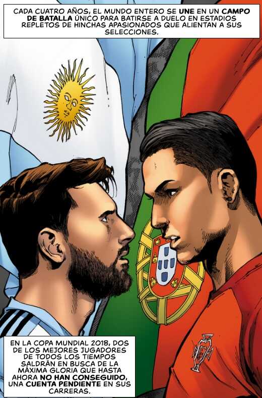 El comic menciona a Alemania como la principal candidata a alzar la copa, pero por supuesto también mencionan las selecciones de Argentina con Messi, Portugal con Cristiano y Neymar en Brasil como opcionada.