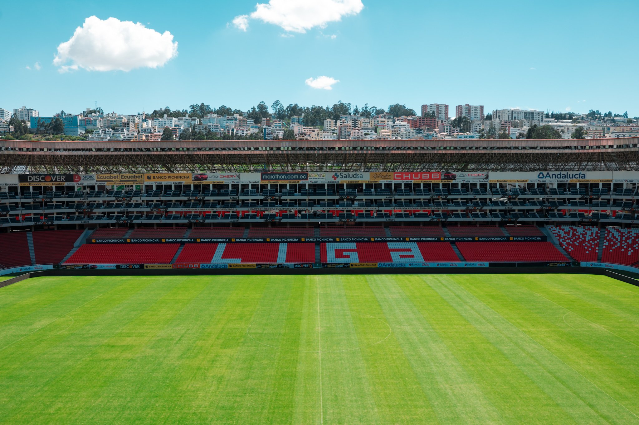 En el plano nacional, Liga ganó siete de sus trece títulos de campeonato jugando en este escenario: 1998, 1999, 2003, 2005, 2007, 2018 y 2023, con técnicos como Paulo Massa, Manuel Pellegrini, Jorge Fossati, Edgardo Bauza y Luis Zubeldía.