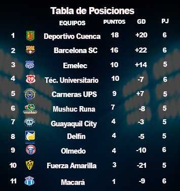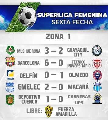 Entre viernes y sábado se jugó la sexta fecha de la SuperLiga, donde se marcaron 33 tantos entre los dos grupos. En la zona 1 Deportivo Cuenca continúa con puntaje perfecto liderando su grupo y ganando todos sus encuentros. Al igual que Barcelona que sigue invicto en la segunda posición con 16 puntos.
