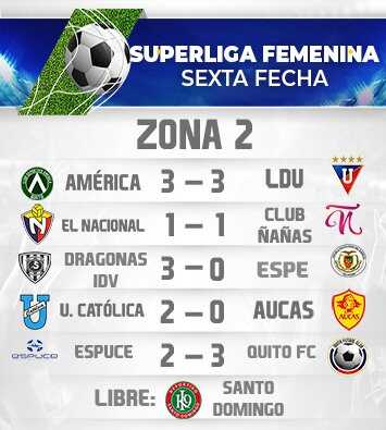 Se cumplió con la sexta fecha de la SuperLiga Femenina en las distintas canchas a nivel nacional. Deportivo Cuenca y El Nacional continúan liderando sus respectivas zonas, aunque Barcelona y Dragonas del Independiente les siguen de cerca.