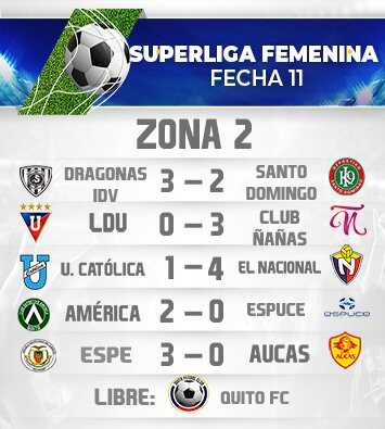 Mientras que en la zona 2, Dragonas del Independiente es el único equipo de los dos grupos que en estas once fechas ha ganado todo, siendo líder de su grupo y seguido de El Nacional y Ñañas que tampoco se quieren despegar de los primeros lugares.