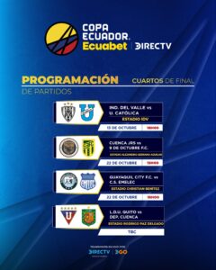 La Federación Ecuatoriana de Fútbol publicó los días y las horas para los primeros tres duelos de los mejores 8 equipos del torneo.