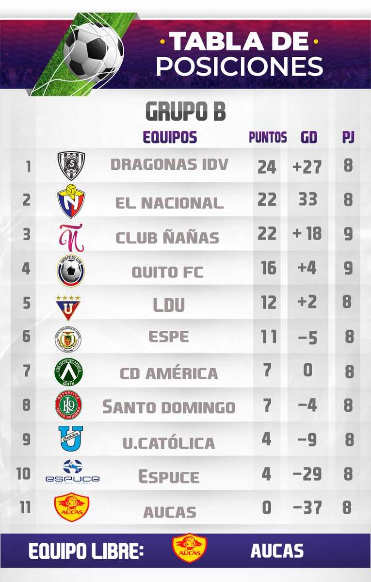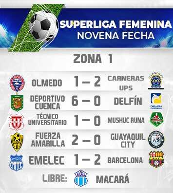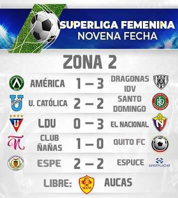 Por su parte en la zona 2, Dragonas sigue sin perder un solo encuentro y volvió a imponerse esta vez al América, para continuar en la punta. Mientras que El Nacional no quiere perder de vista el primer lugar y también ganó a LDU para seguir en el segundo lugar.