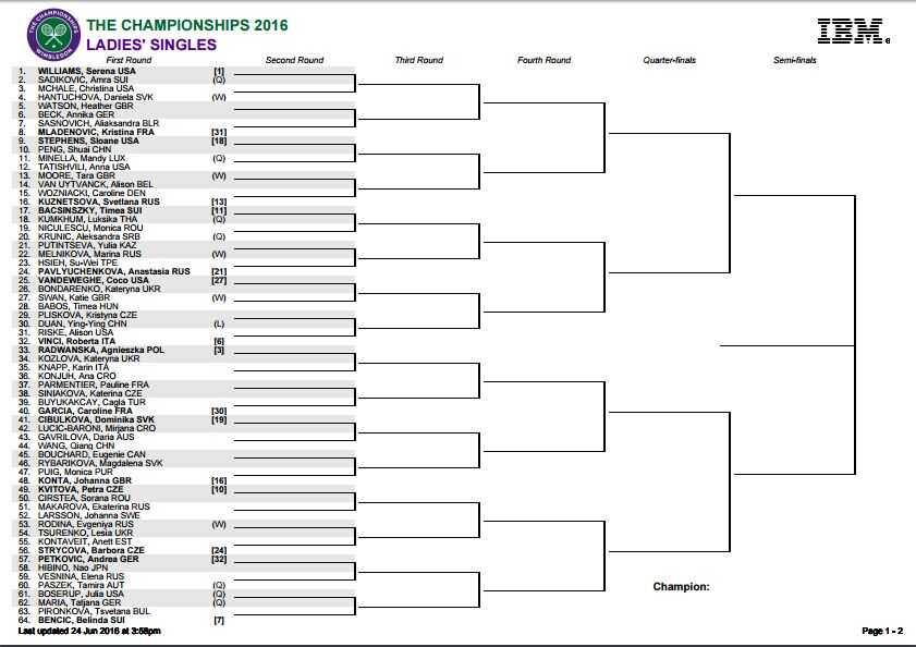 Esta tarde en el All England Lawn Tennis and Croquet Club de la capital británica se llevó a cabo el sorteo del Wimbledon, donde la cabeza de serie número uno, Serena Williams, empezará su andadura en segunda ronda, mientras que el cuadro masculino Novak Djokovic iniciará su defensa del título frente al británico James Ward.